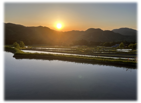 ▲【4月中旬 18時半頃】 宕陰小中学校近く 越畑の棚田より